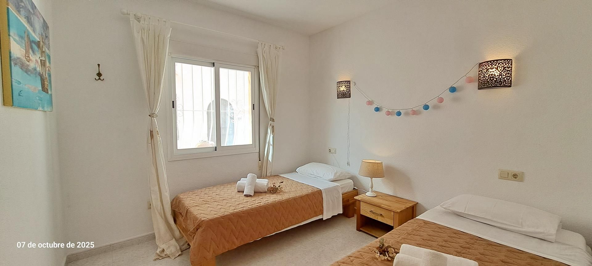 - dormitorio con 2 camas individuales y ventilador