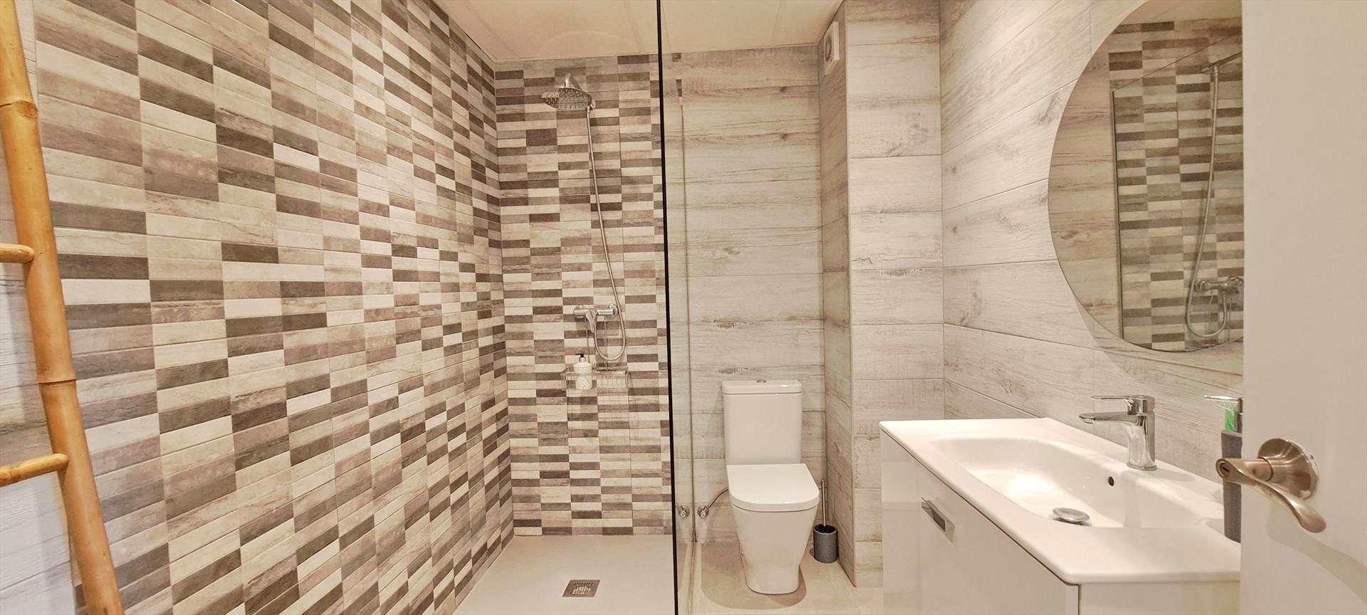 • baño con lavabo individual, ducha, inodoro y secador de pelo