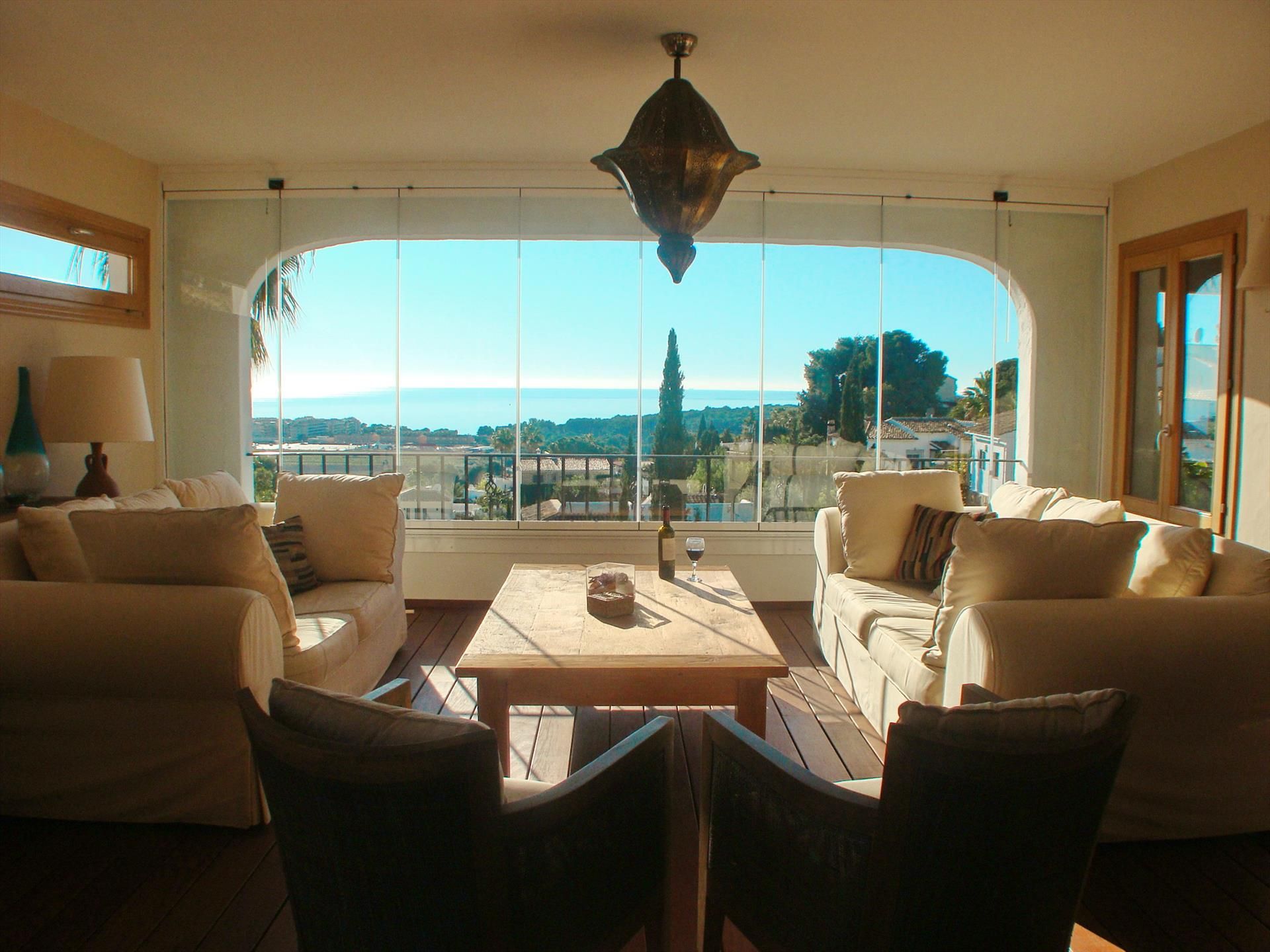 Villa de lujo preciosa y con piscina climatizada en Moraira, Costa Blanca, España para 8 personas. La villa está situada en una zona de playa y residencial, cerca de restaurantes y bares y supermercados y a 1 km de la playa de L'Ampolla.