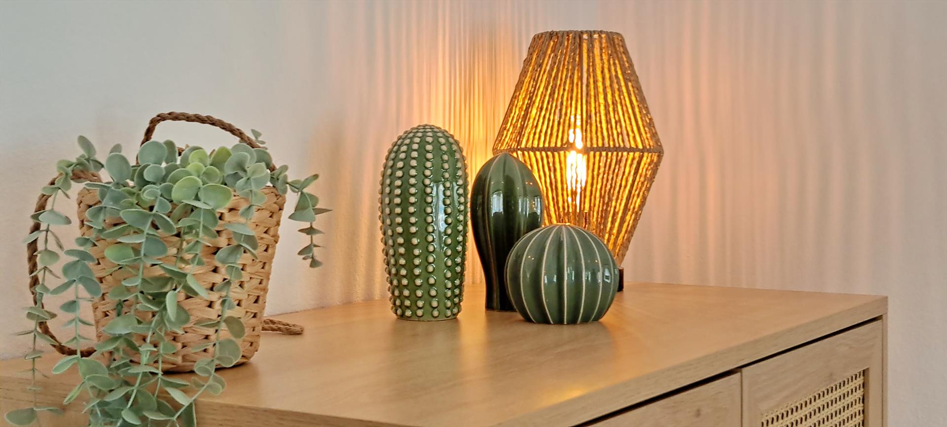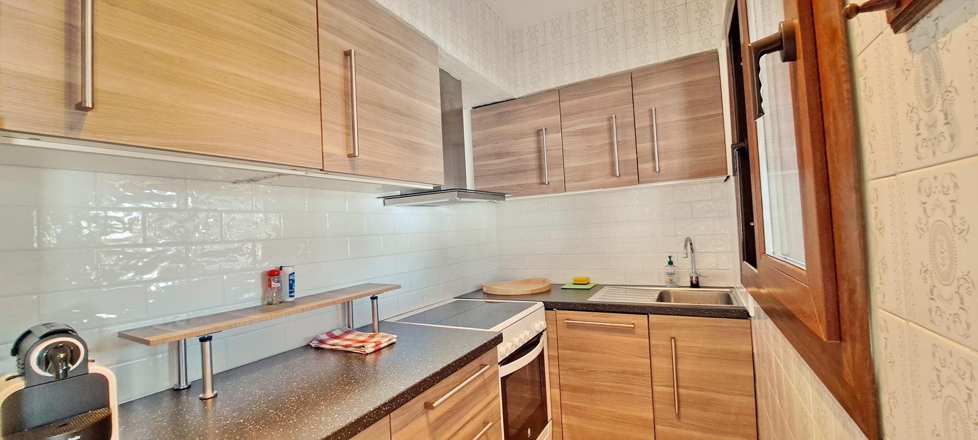 • cocina con vitrocerámica eléctrica, horno eléctrico, microondas, lavavajillas, frigorífico-congelador, cafetera, batidora, tostadora y exprimidor