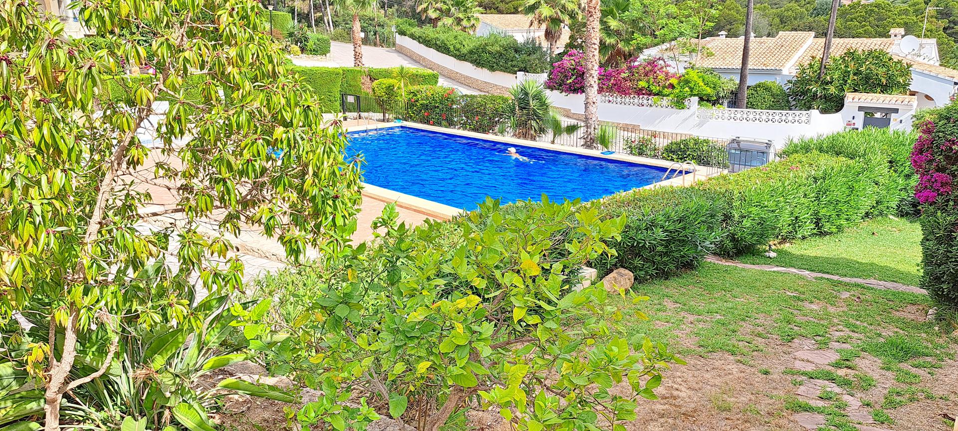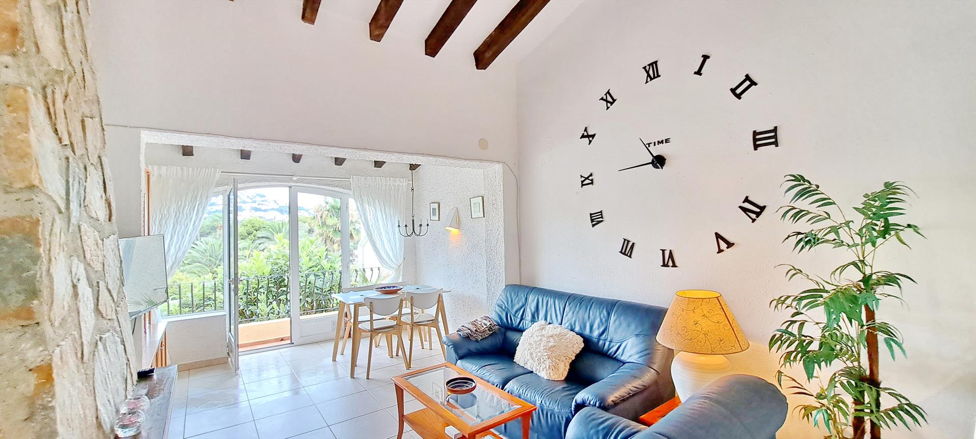 Schönes und gemütliches Ferienhaus in Moraira, Costa Blanca, Spanien mit Gemeinschaftspool für 4 Personen. Das Haus befindet sich in einer residentiellen Umgebung und etwa 2 Km entfernt vom Strand von Platgetes y L'Ampolla.