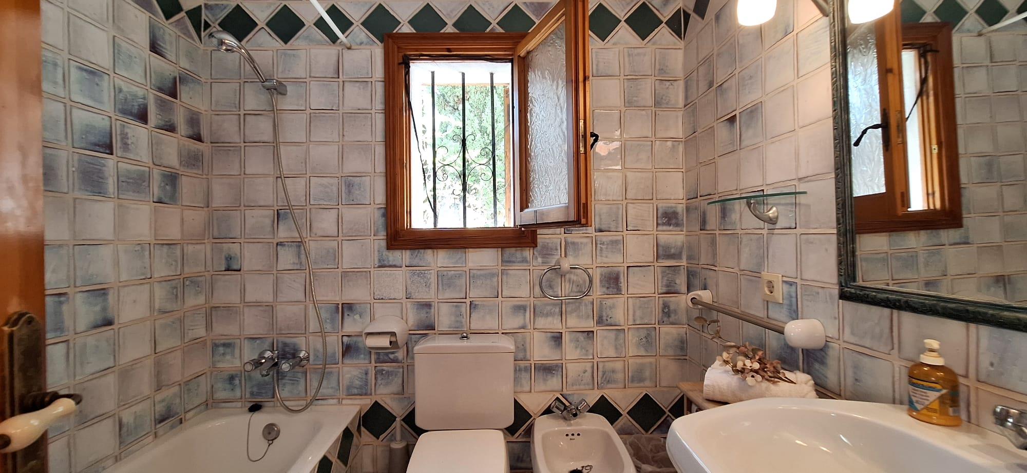 Outside, you’ll find a spacious garden with trees and natural shade, as well as a spectacular private swimming pool (5 x 10 m), ideal for cooling off and enjoying the Mediterranean sun. Next to the pool, the terrace with a wooden pergola and outdoor dining area is perfect for long meals in the open air.