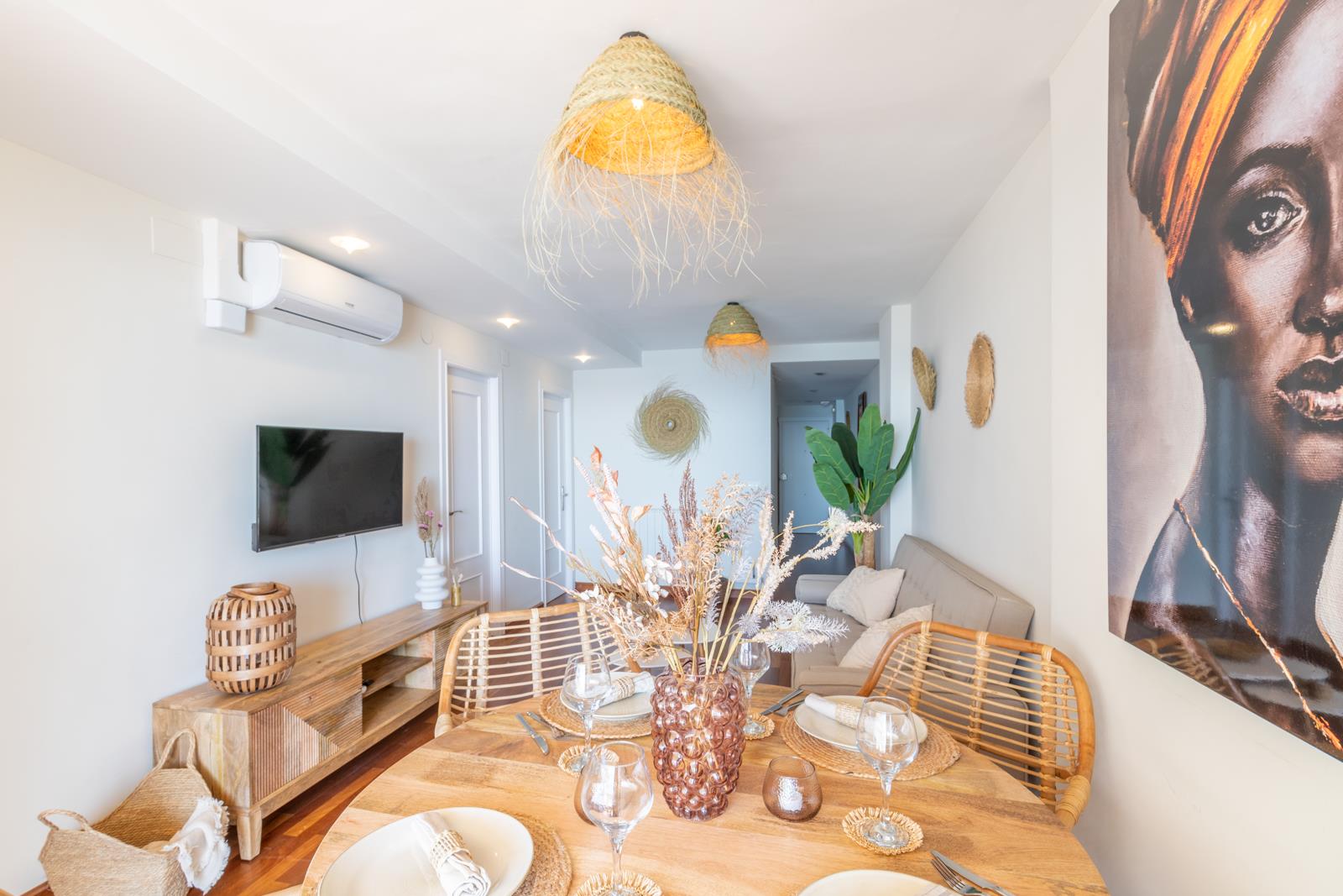 The property has 2 bedrooms and 2 bathrooms. Its comfort and proximity to the beach, opportunities for shopping, entertainment and nightlife make this an ideal flat for your holidays in Spain with family or friends.