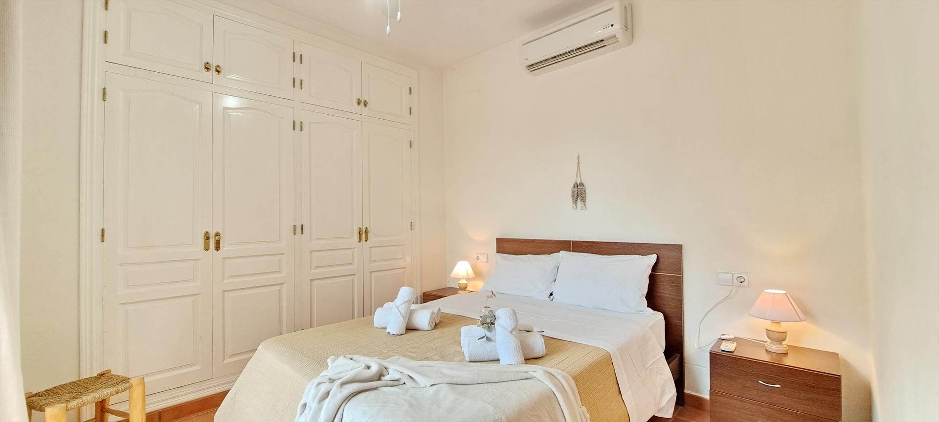 The villa has 4 bedrooms, 2 bathrooms and 1 guest toilet, spread over 2 levels. The accommodation offers privacy, a wonderful lawned garden with trees and a wonderful pool. Its comfort and the vicinity of the beach, places to shop, sports activities, entertainment facilities and places to go out make this an ideal villa to celebrate your holidays with family or friends.
