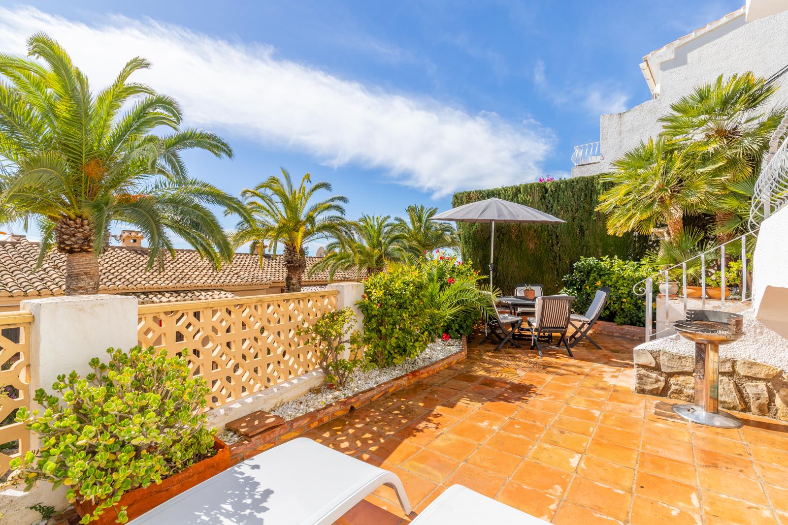 Belle et confortable maison de vacances avec vue panoramique sur la mer et jacuzzi à Moraira, Costa Blanca, Espagne pour 6 personnes. La maison de vacances est située dans un quartier côtier et résidentiel, à 3 km de la plage de L'Ampolla.La maison a 3 chambres à coucher, 2 salles de bain et 1 toilette pour les invités, réparties sur 2 étages. Le voisinage de la plage, d'activités sportives et d'endroits pour sortir rend cette maison de vacances un logement idéal pour passer les vacances en Espagne avec votre famille ou vos amis.