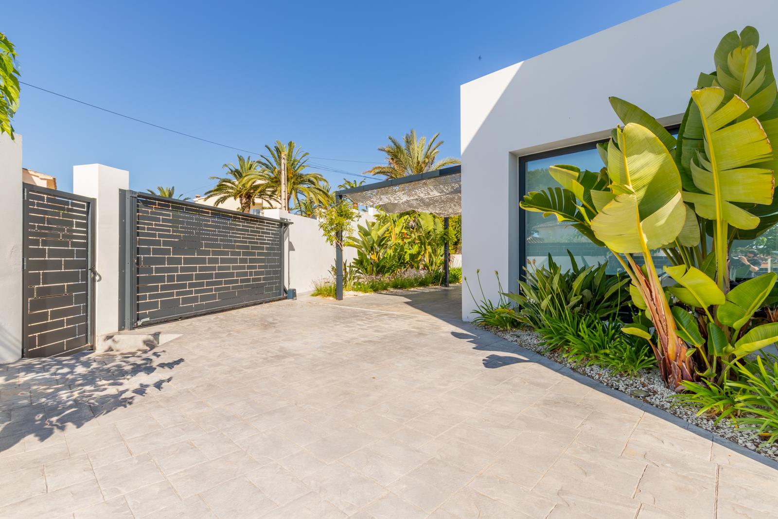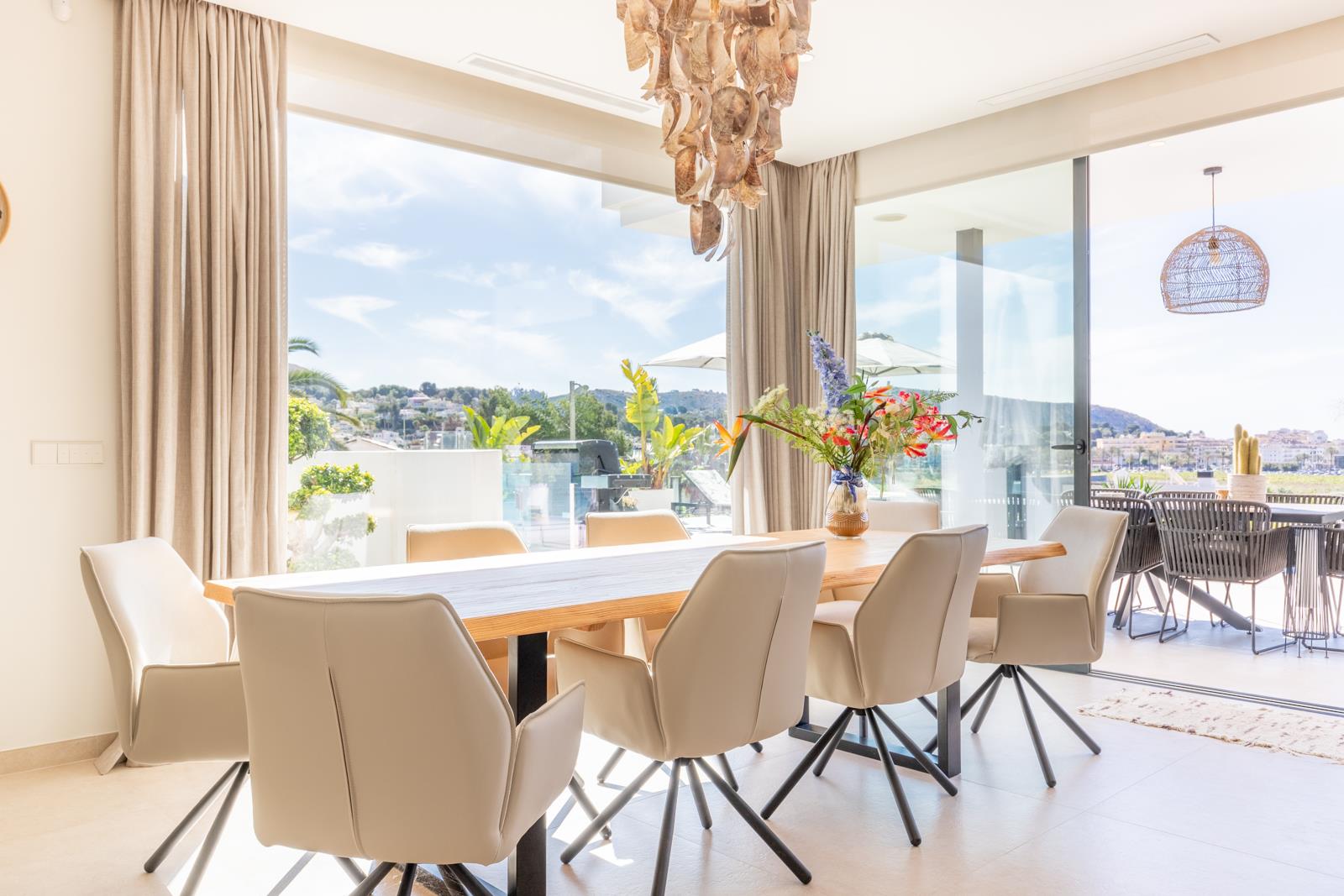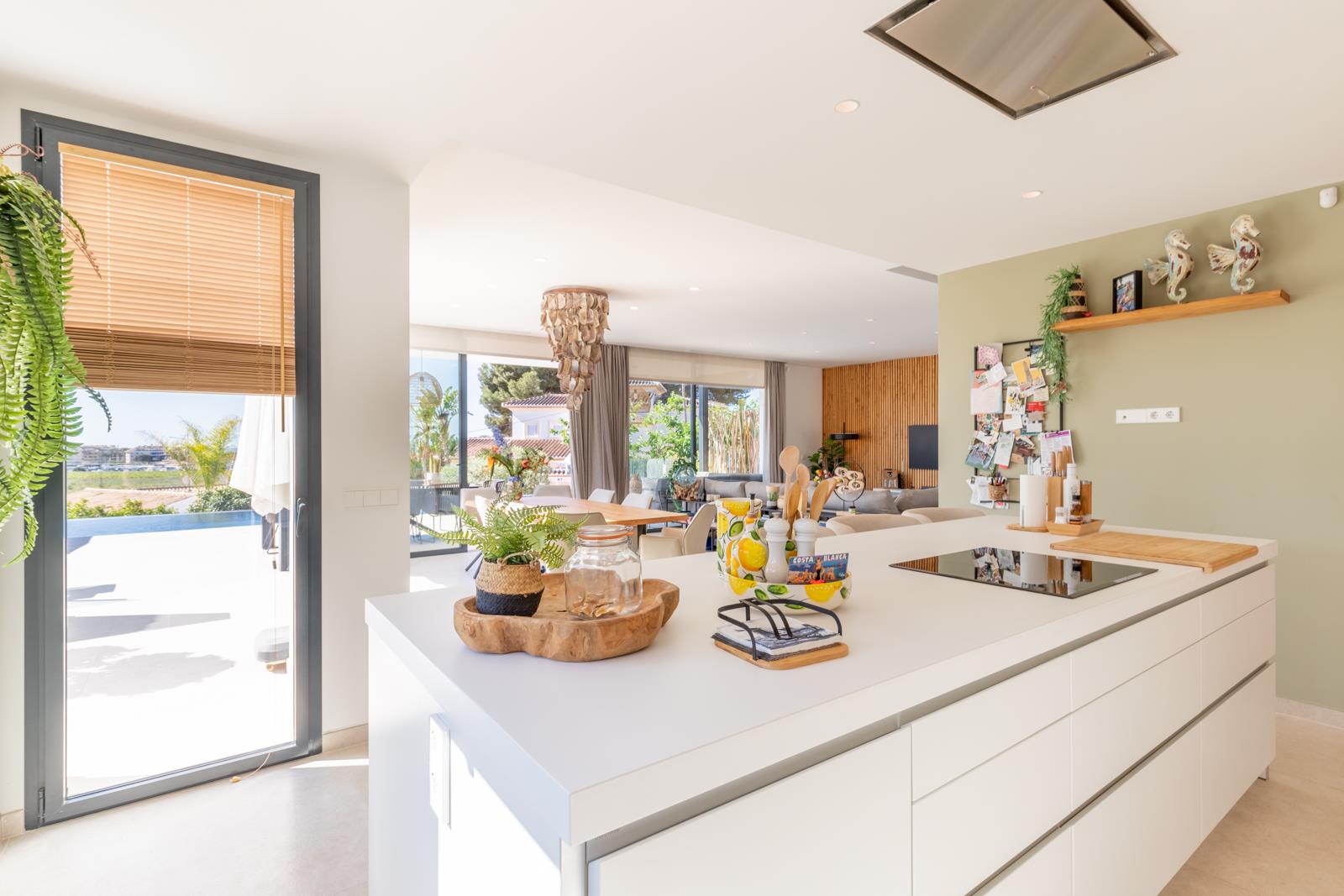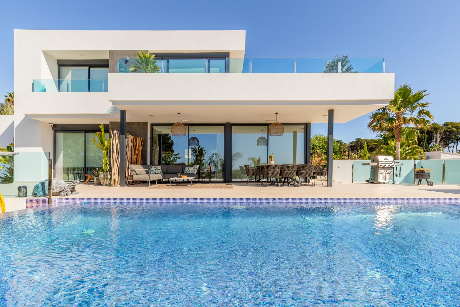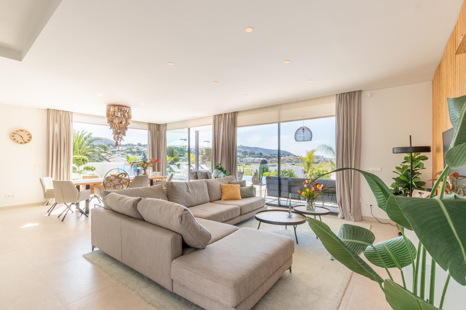 Villa moderne et luxueuse avec piscine privée à Moraira, Costa Blanca, Espagne pour 6 personnes. La villa est située dans un quartier résidentiel en bord de mer et se trouve à 1 km de la plage de L'Ampolla.