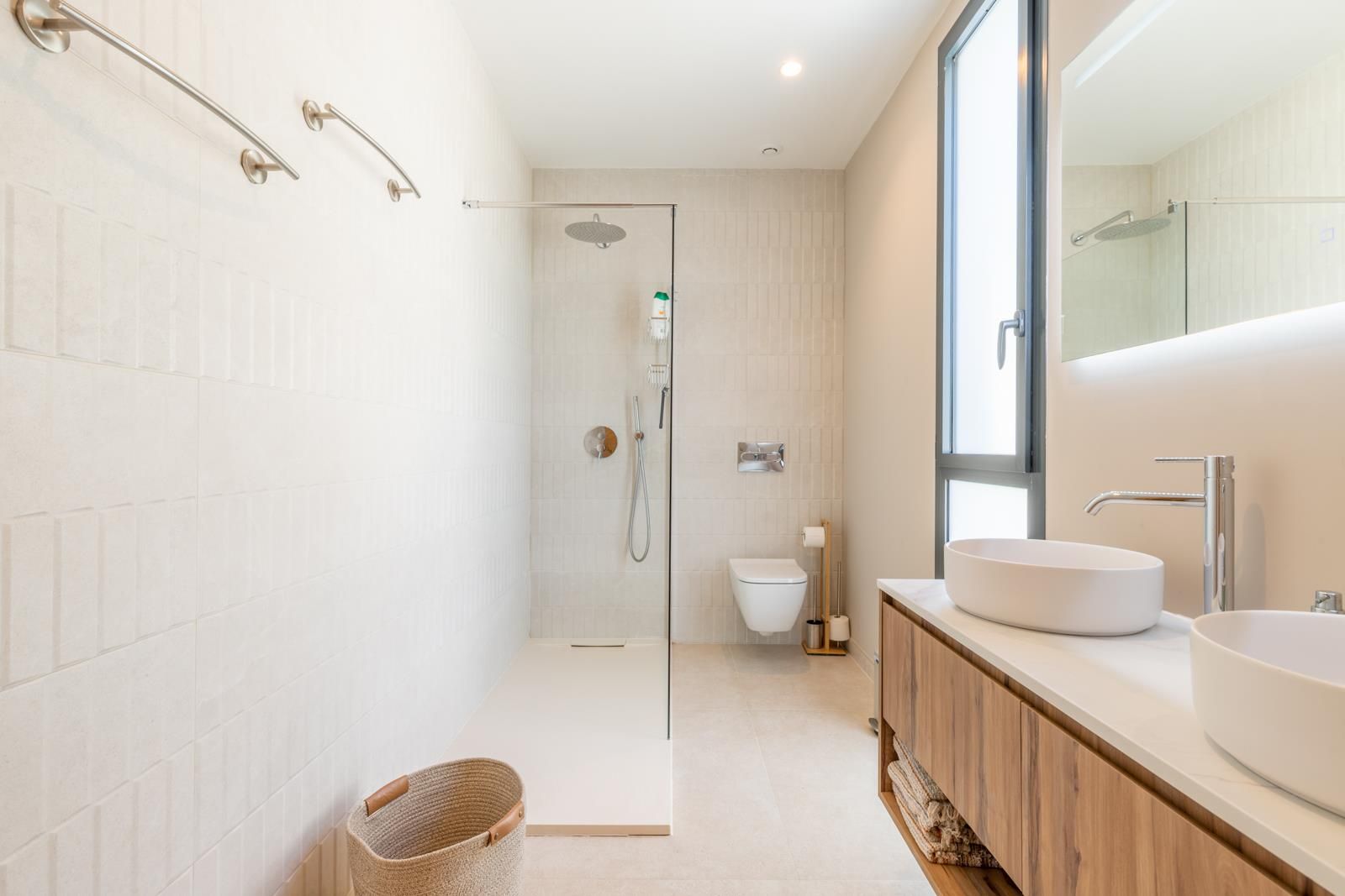 - salle de bains attenante avec double vasque, douche et toilettes