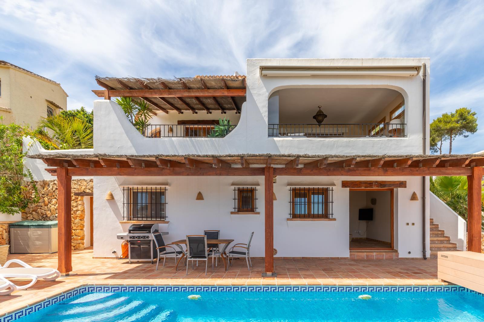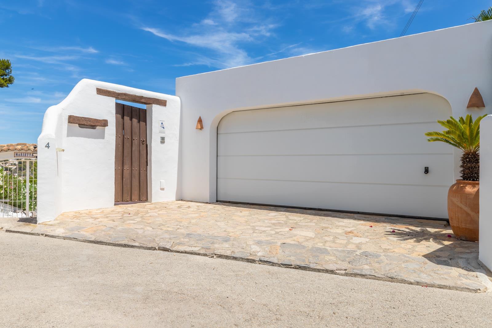Villa de luxe charmante à Moraira, Costa Blanca, Espagne avec piscine chauffée pour 8 personnes. La villa est située dans une région balnéaire et résidentielle, près de restaurants et bars et de supermarchés et à 1 km de la plage de L'Ampolla.