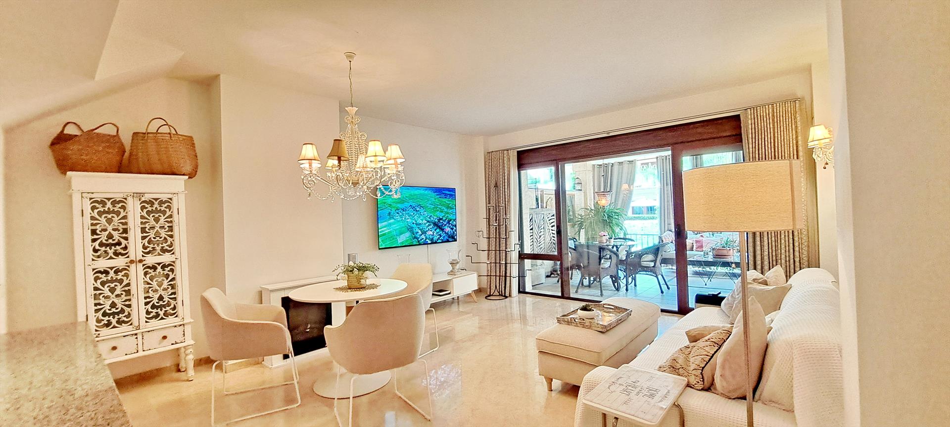 Er zijn 2 ruime slaapkamers, 2 moderne badkamers en een lichte woon-eetkamer met directe toegang tot een privéterras, perfect om van de avond te genieten. De keuken is volledig uitgerust met kwalitatieve apparatuur.