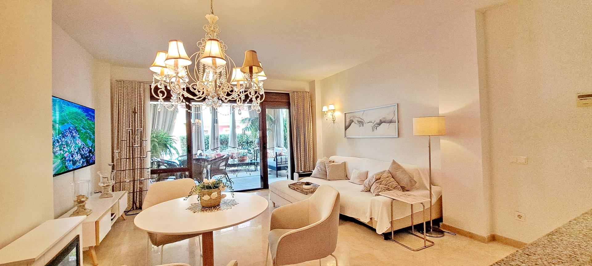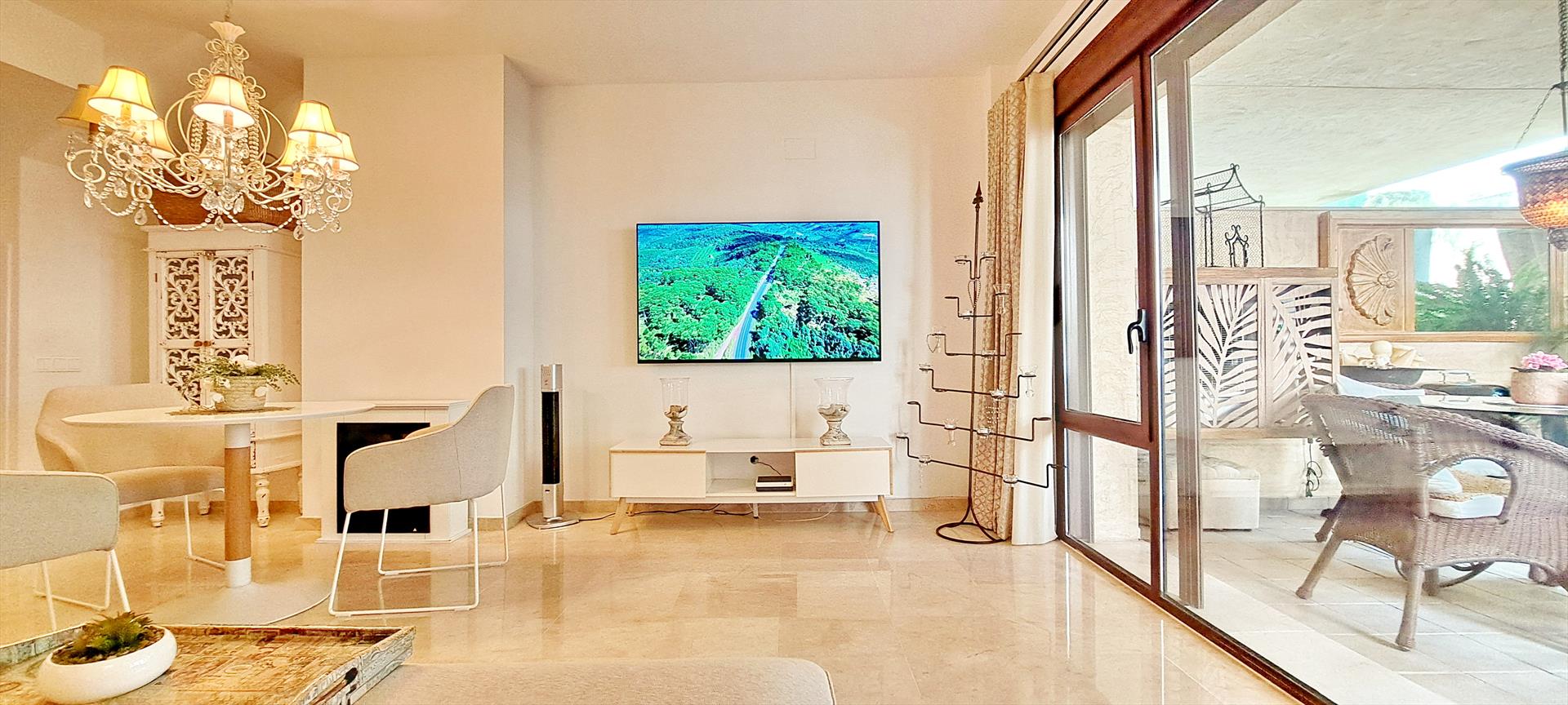 - woon-/eetkamer met air conditioning en televisie