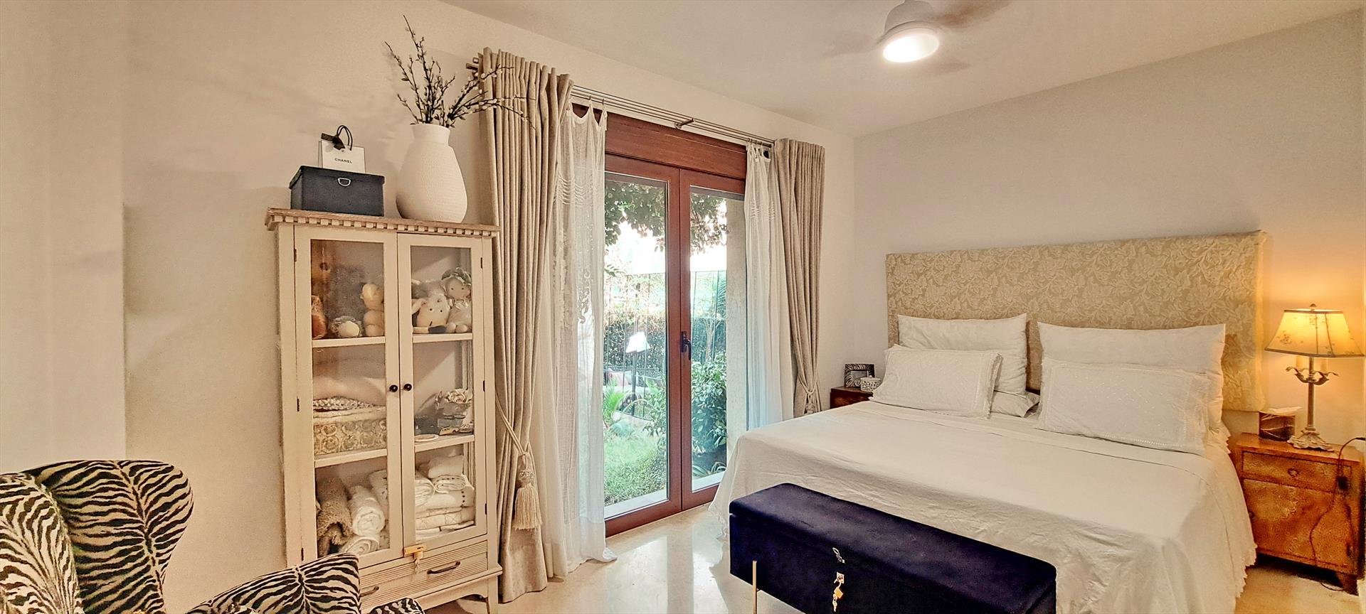 - slaapkamer met tweepersoonsbed, air conditioning en badkamer ensuite