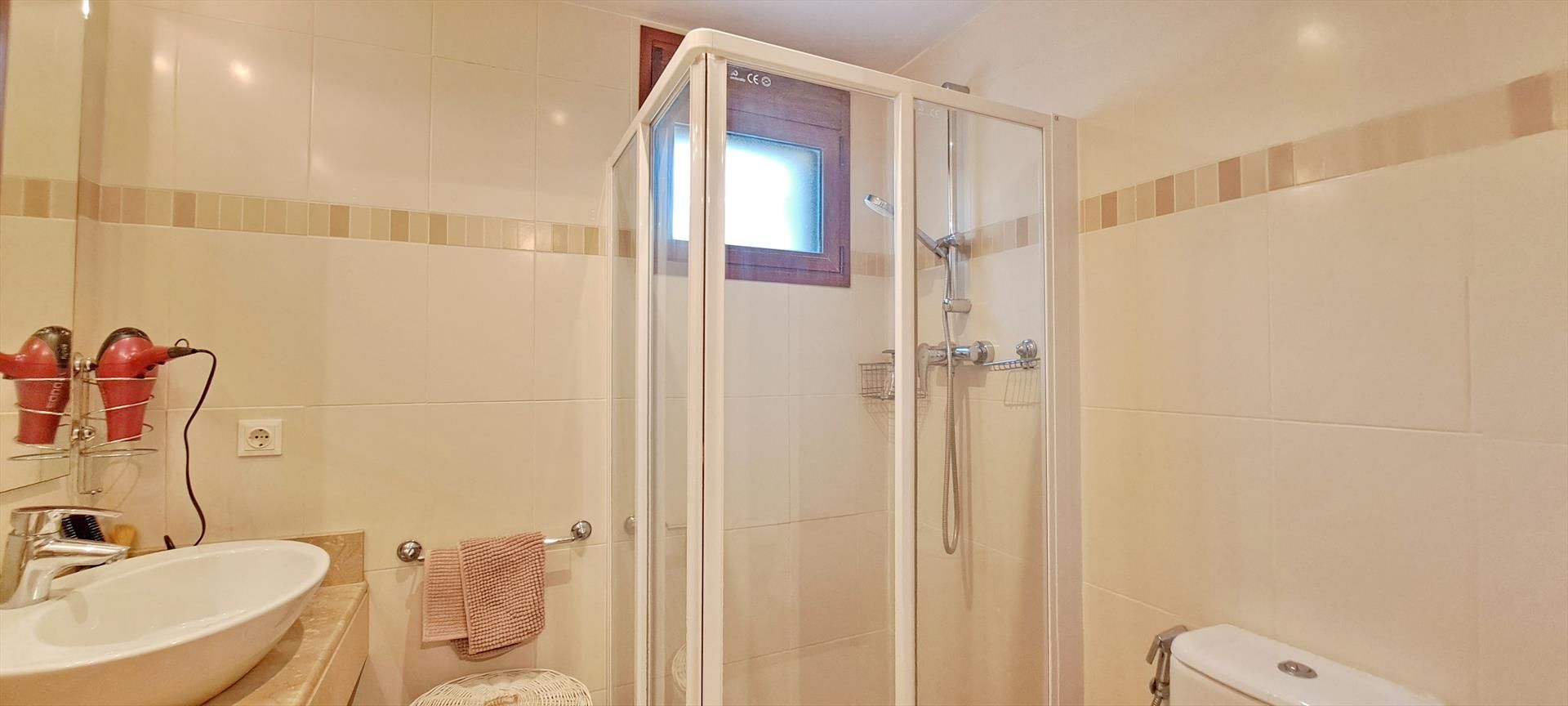 - badkamer met wastafel, douche en toilet
