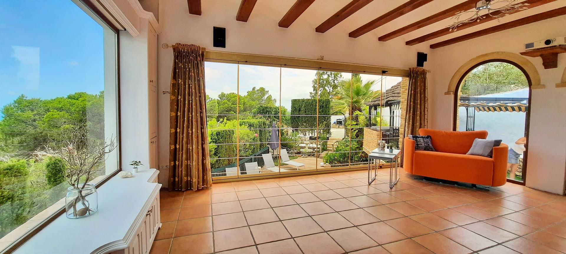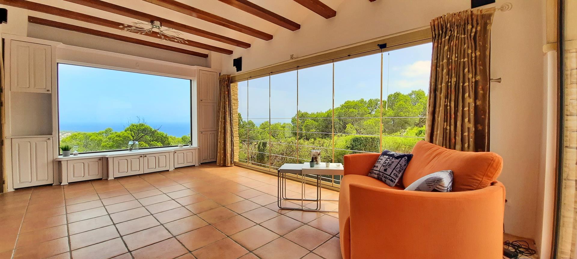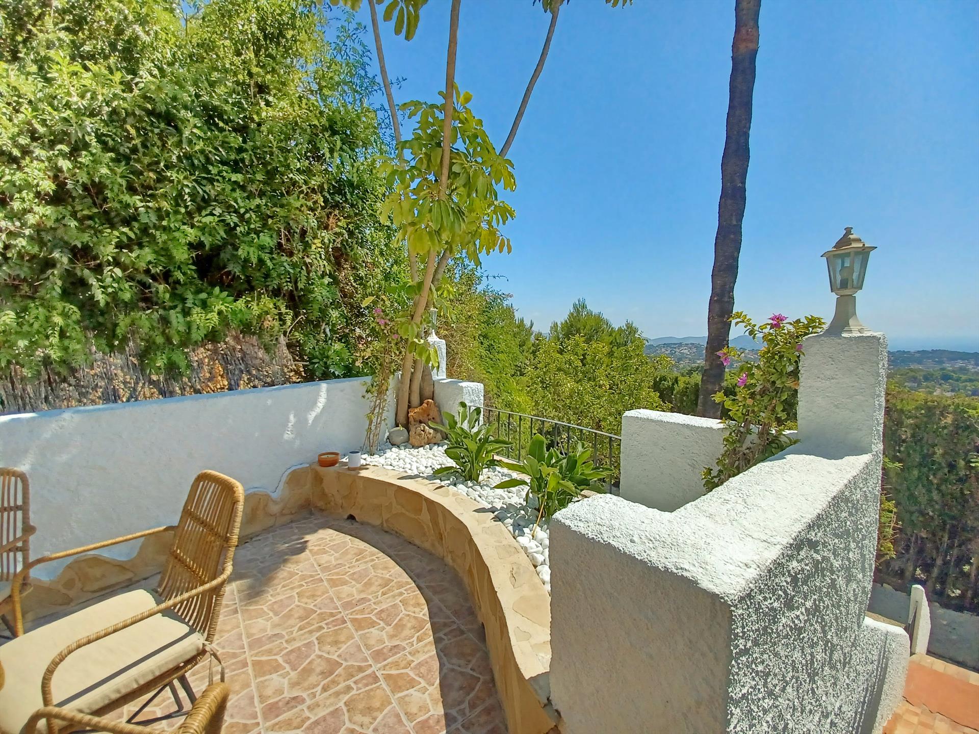 Prachtige en gezellige villa met privé zwembad in Benissa, aan de Costa Blanca, Spanje voor 8 personen. De vakantievilla ligt in een heuvelachtige kustomgeving en op 2 km van het strand van La Fustera.