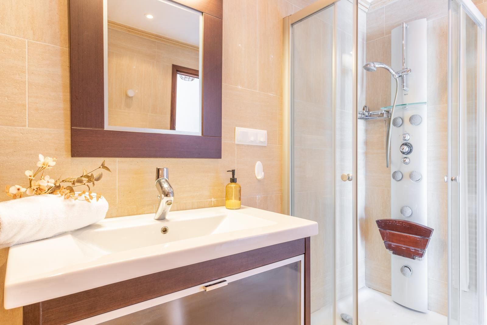 - badkamer en suite met wastafel en douche